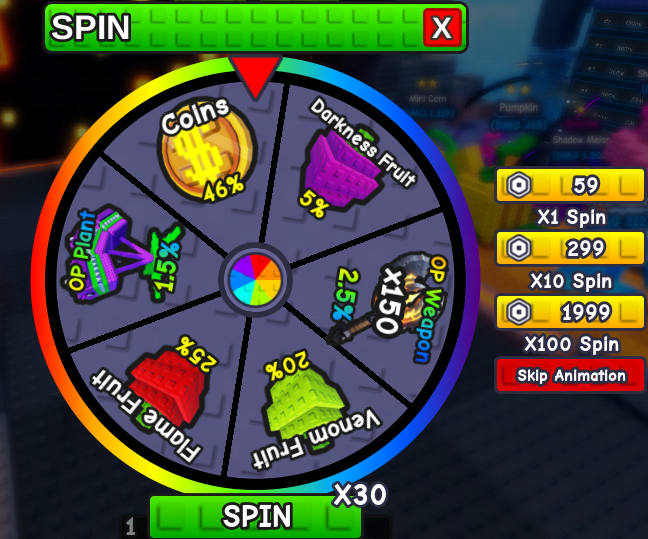Dùng để: Spins là tài nguyên “quay” linh hoạt. Thay vì bắt bạn theo 1 trái hoặc 1 potion, nó cho bạn nhiều cơ hội lấy phần thưởng event.